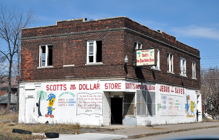 Jesus saves, but when he wants to spend he goes to Scott’s One Stop Dollar Store in Detroit.
